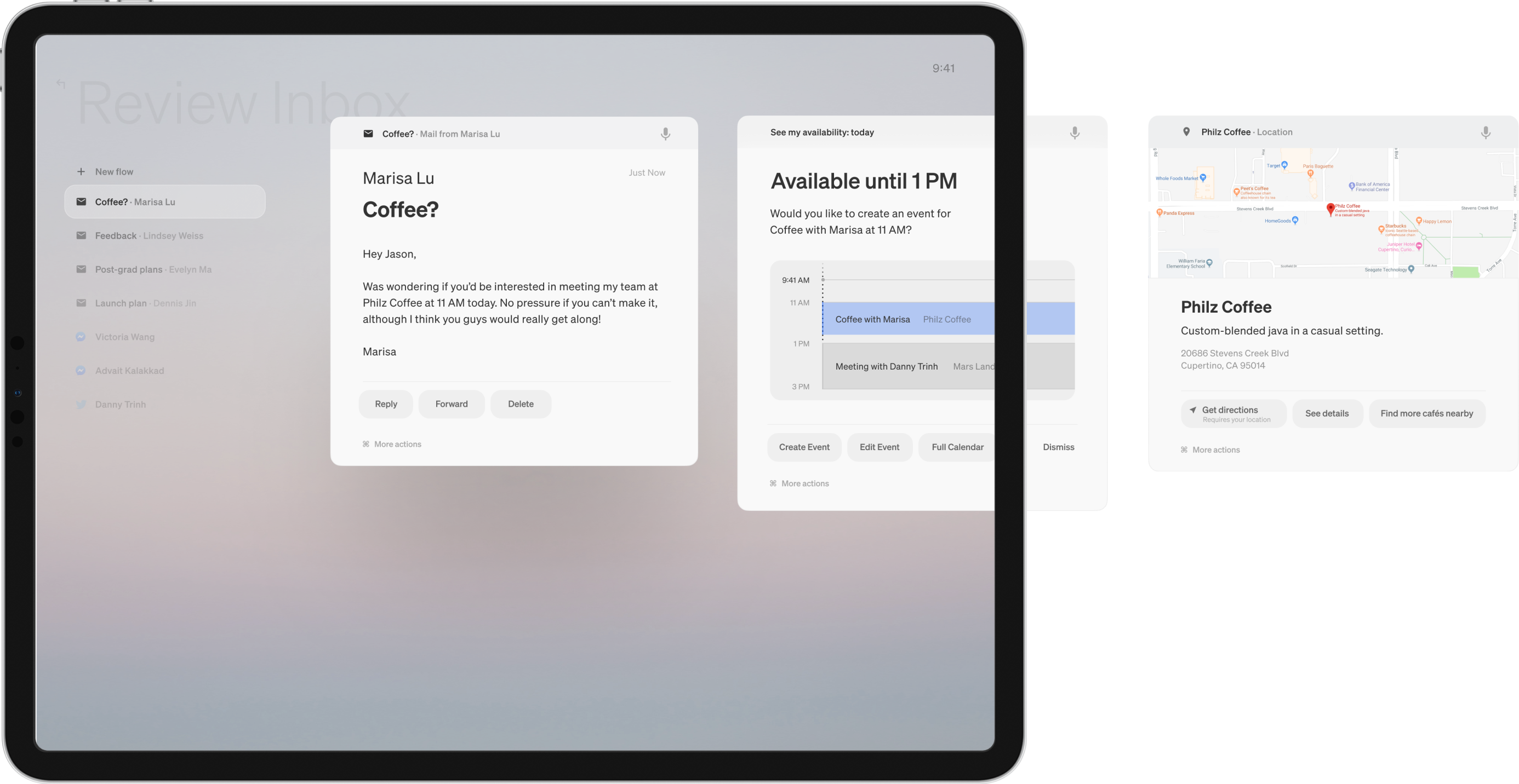 The ability to interact by voice, touch, or typing, easily switching modalities based on what’s natural for the user. Where interfaces are fluid, and sound and haptics enhance calm, ambient interactions. A proactive concierge that provides what’s needed based on understanding who you are and gets better the more you interact with it.