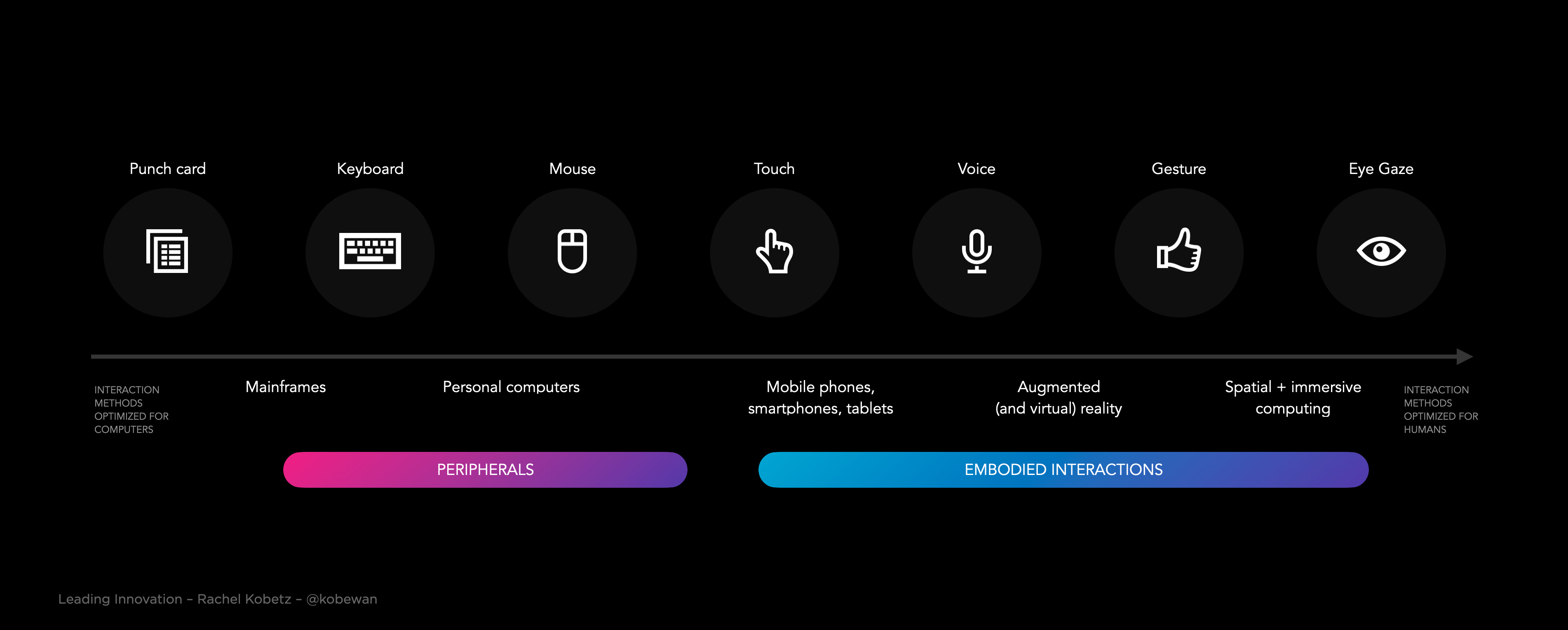 The journey has been gradual, with momentum building in the last five years. It started with command-line interfaces, moved to graphical user interfaces, and then to touch interfaces with the advent of smartphones and tablets.